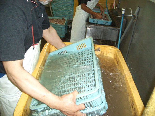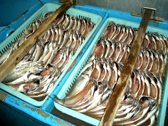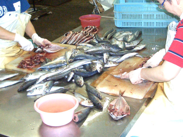 ひとつひとつ手作業で魚をさばきます。